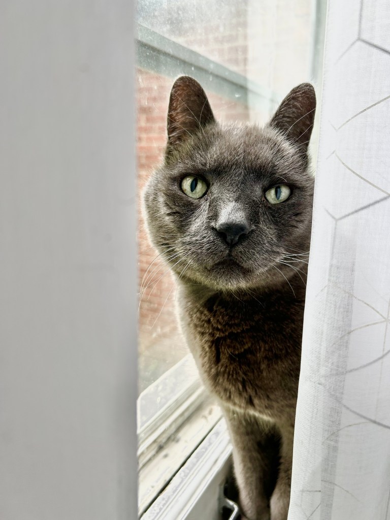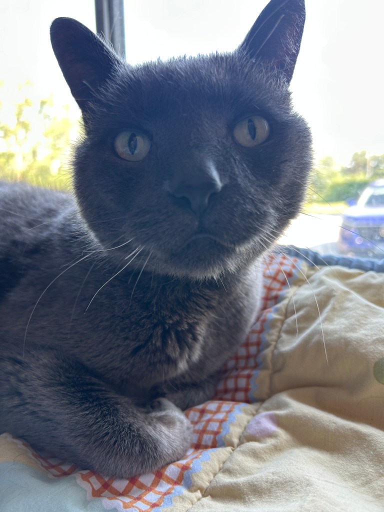 Seamus does show signs of arthritis so he gets a twice daily pill to help with pain management. He can still jump short distances and loves to snooze on cat trees and window ledges. He really loves to look outside.