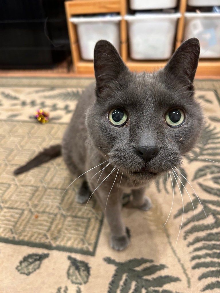 Seamus (pronounced “shay-mus”) is a lovely boy. He adores being picked up and will snuggle right into your neck and purr. Seamus was found outside and ended up at a local animal control. When we pulled him there was some concern he might have kidney disease. We had him assessed further and he does *not* have kidney disease at this time!