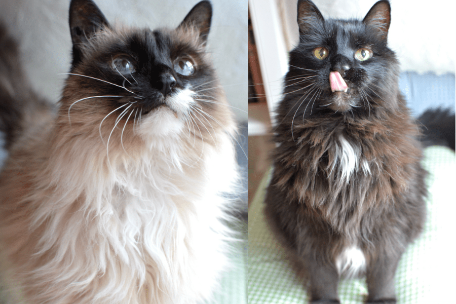 Super Senior Cat Sanctuary became a program under the nonprofit umbrella of Second Hope Circle in 2020. Two elderly cats, Sam and Marvin, were posted on Kijiji as needing immediate rehoming or else they would be euthanized. We picked the cats up and found a placement for a third younger cat (who was lost inside the house and not found for weeks). Sam and Marvin were adopted a few months later by a vet tech. The pair are pictured here.