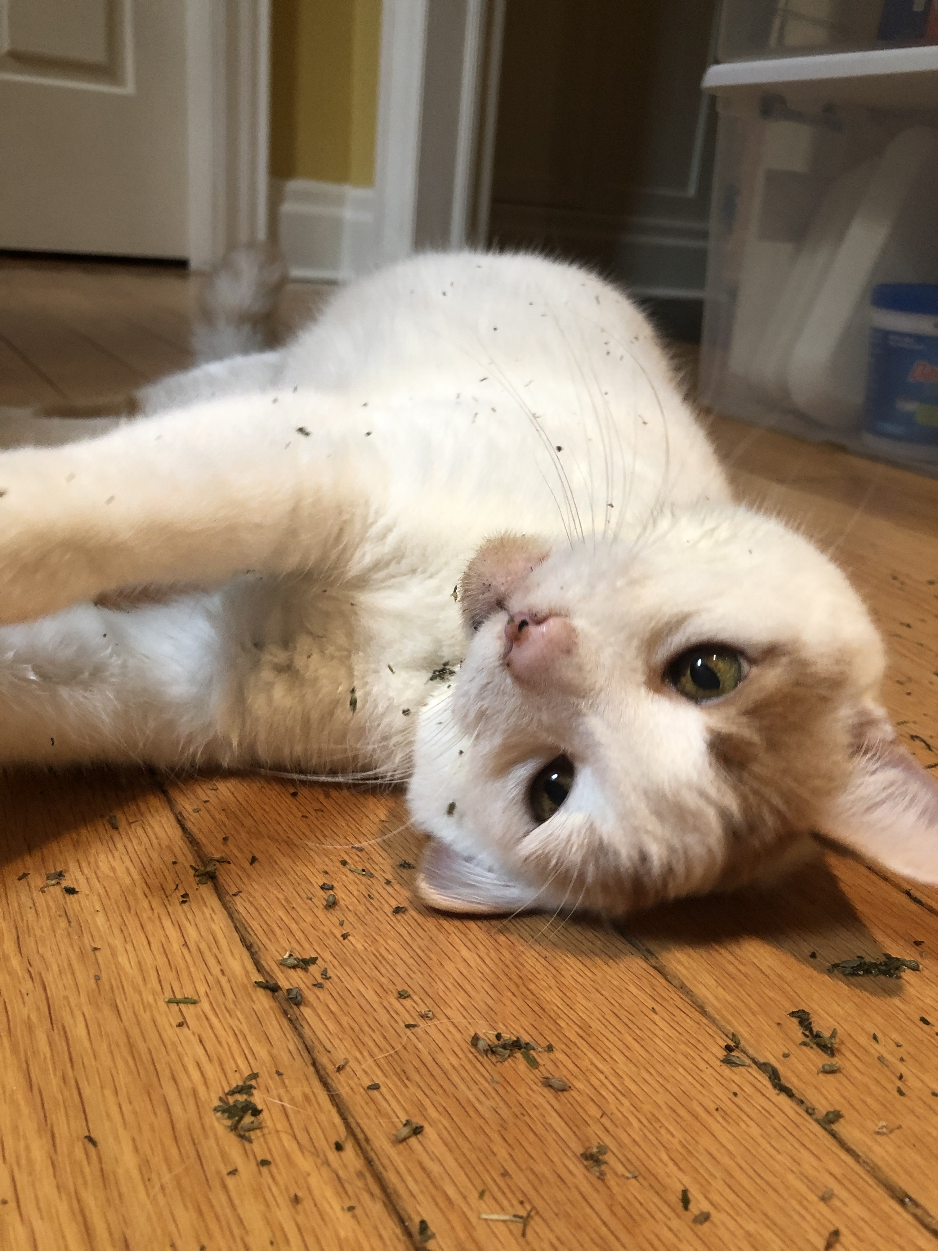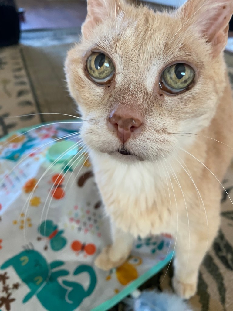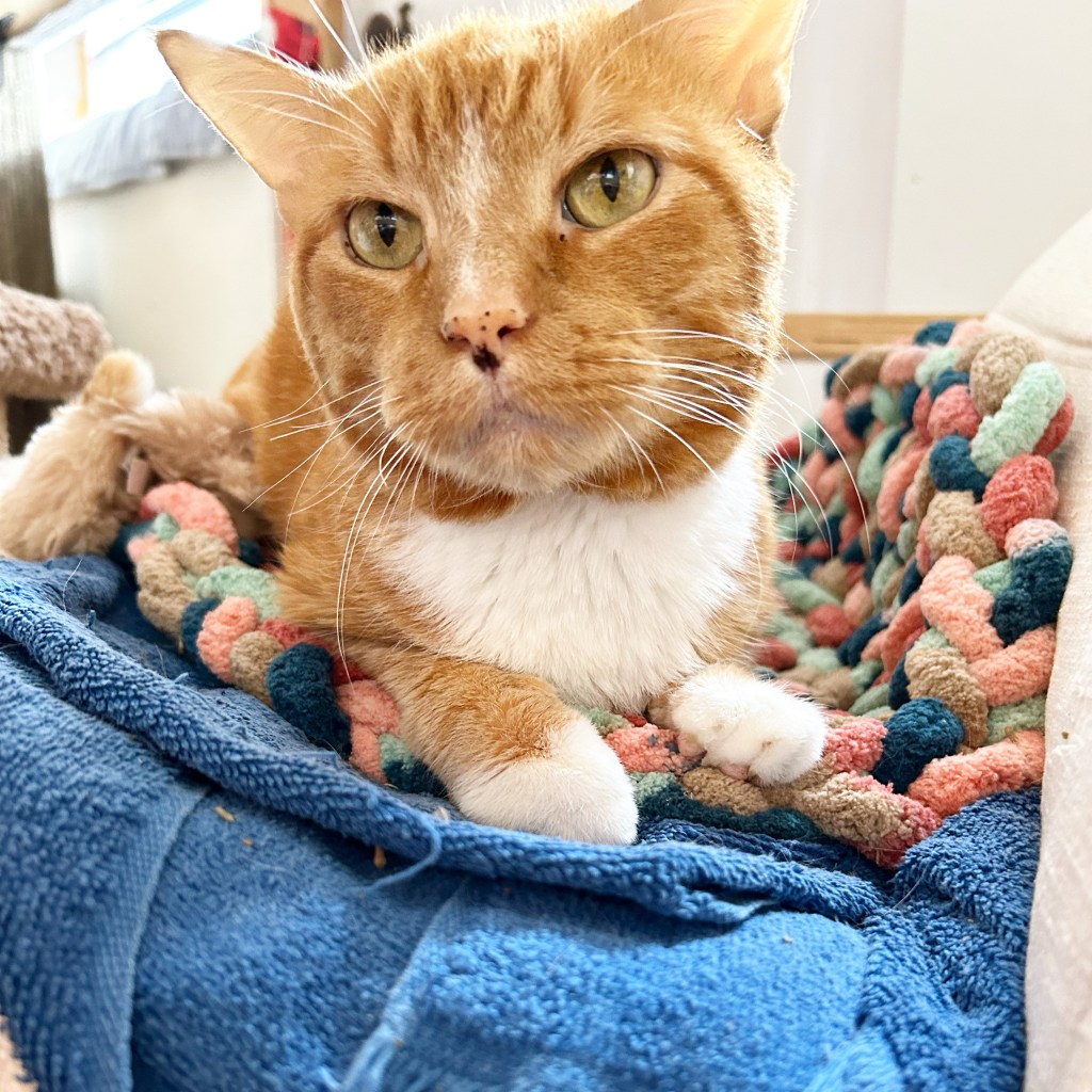 Gus was 14 years old and came to us when he had a euthanasia appointment scheduled. We managed to place him just in time! He was so sweet and and we were able to get him into diabetic remission. He developed some sort of spinal issue and we had a specialist appointment scheduled after standard tests did non reveal the cause. Unfortunately he crashed just days before his appointment. He was rushed to the vet but he was already too far gone. It’s suspected he had cancer. Gus will be remembered for the cutest purr we’ve ever heard that sounded like doves cooing. He loved to make biscuits, had the softest fur and he adored catnip.