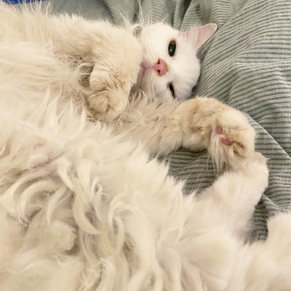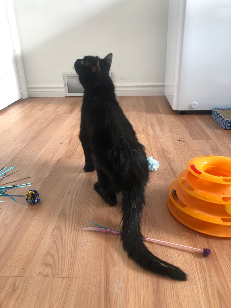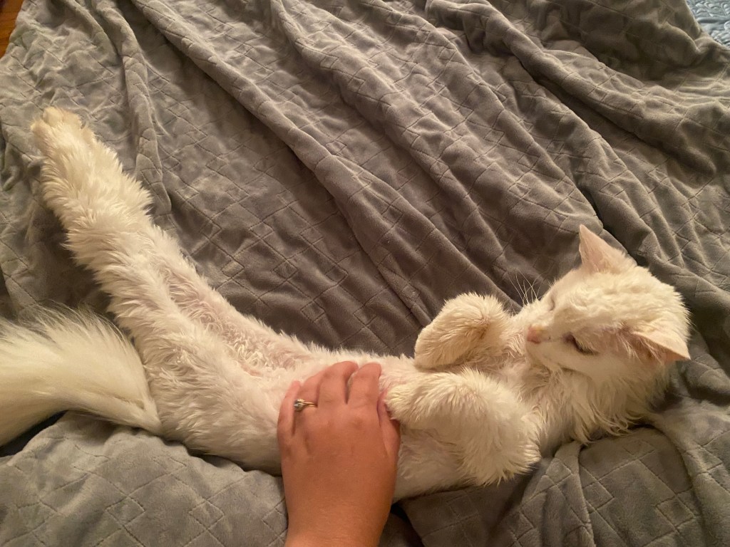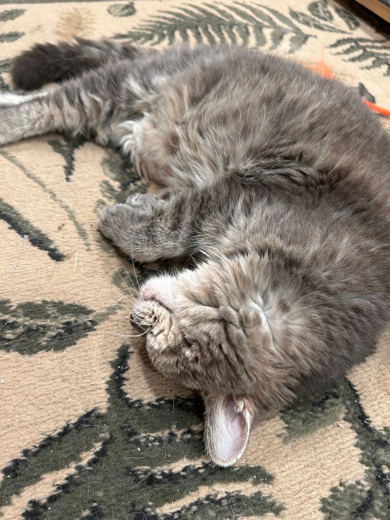 Gus was 14 years old and came to us when he had a euthanasia appointment scheduled. We managed to place him just in time! He was so sweet and and we were able to get him into diabetic remission. He developed some sort of spinal issue and we had a specialist appointment scheduled after standard tests did non reveal the cause. Unfortunately he crashed just days before his appointment. He was rushed to the vet but he was already too far gone. It’s suspected he had cancer. Gus will be remembered for the cutest purr we’ve ever heard that sounded like doves cooing. He loved to make biscuits, had the softest fur and he adored catnip.