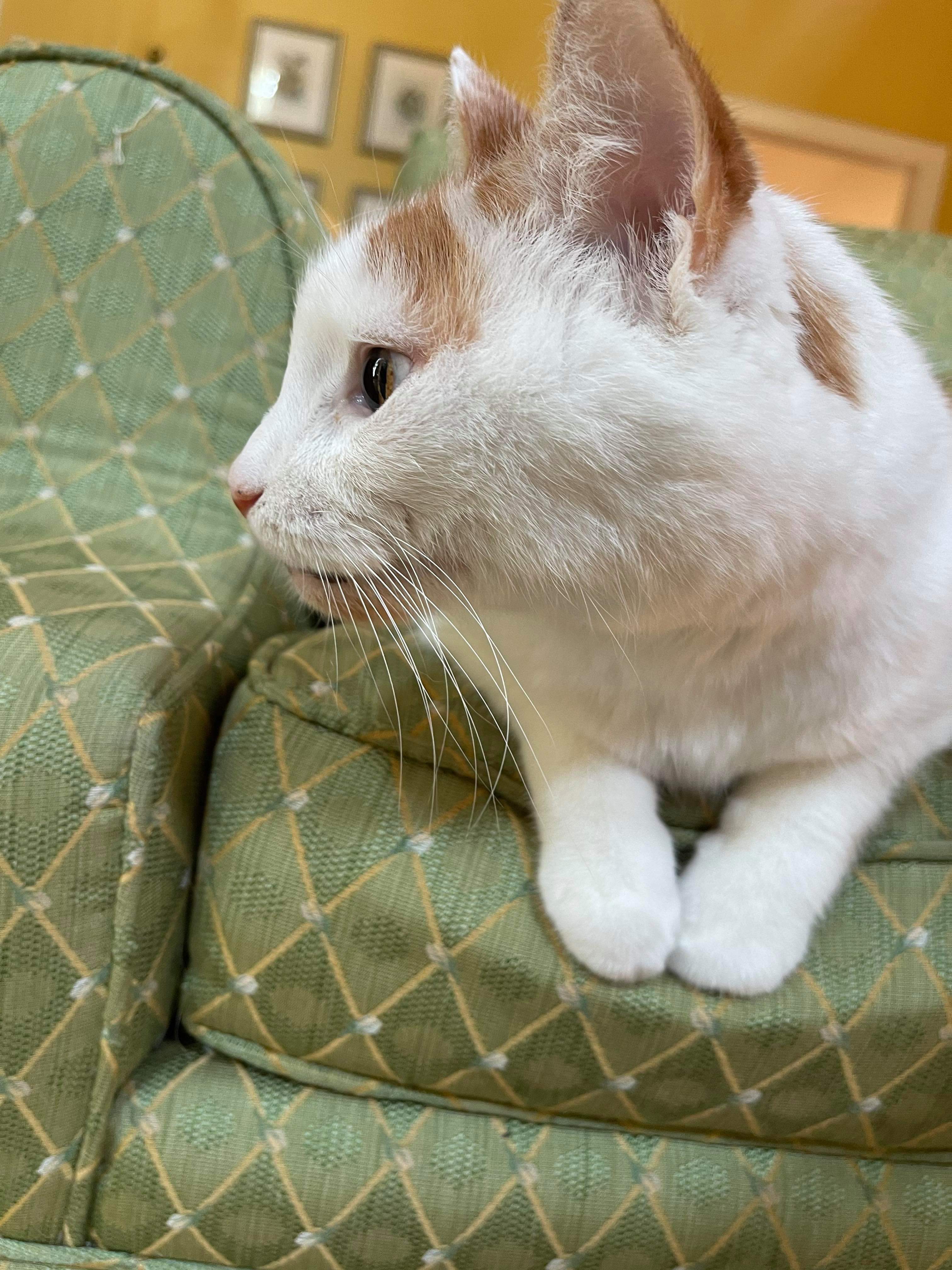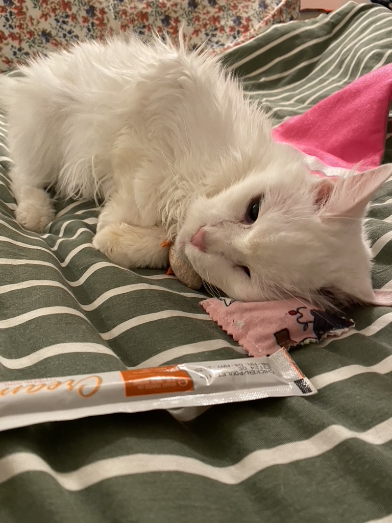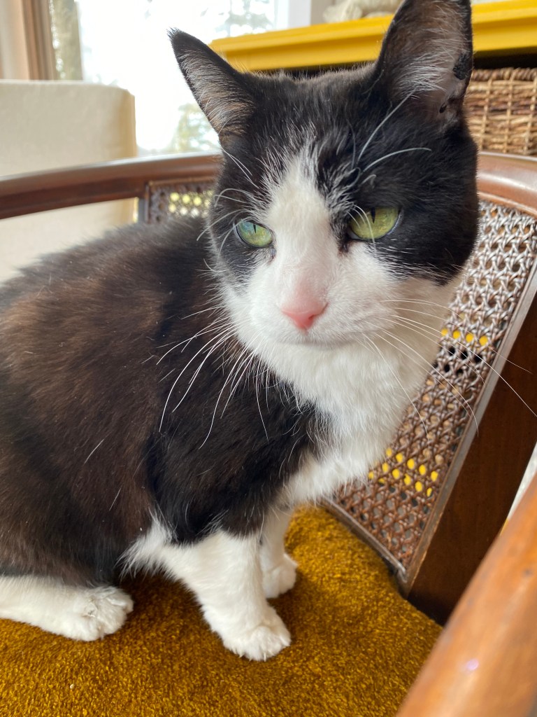 Chichi came to us in 2021 and was with us for 3 years. She had chronic eye issues which required three different eye surgeries. Chichi was independent and loved curling up and looking out the window. She adored cheek scritches and would fall over trying to get more. She developed heart failure and masses in multiple organs.