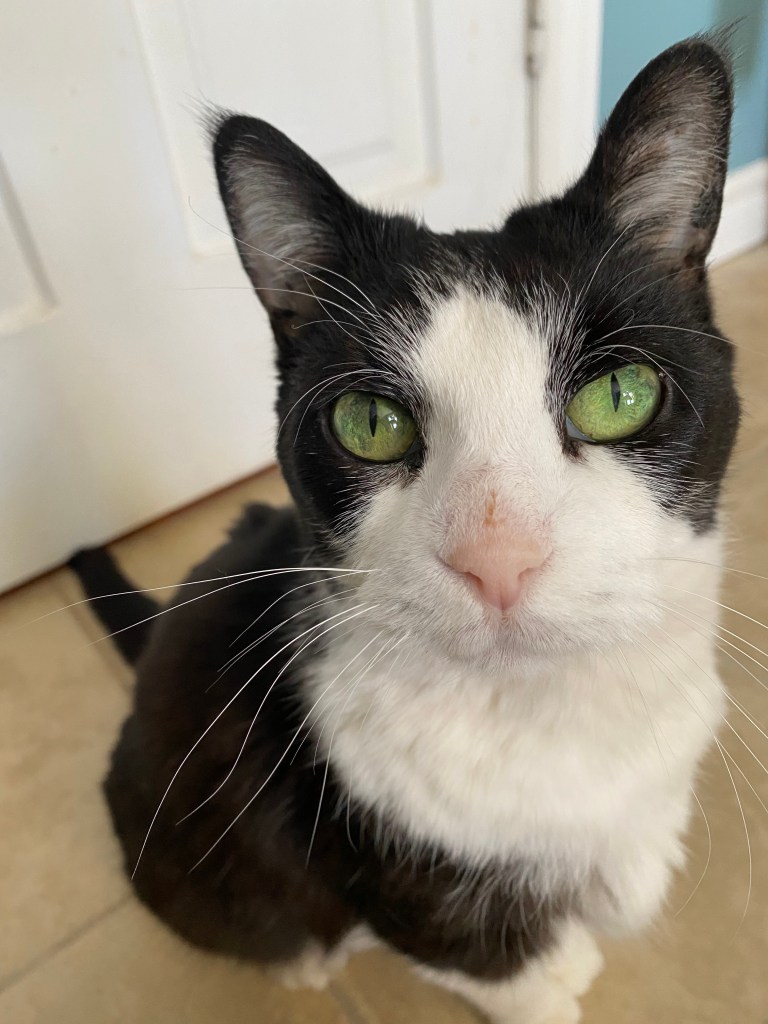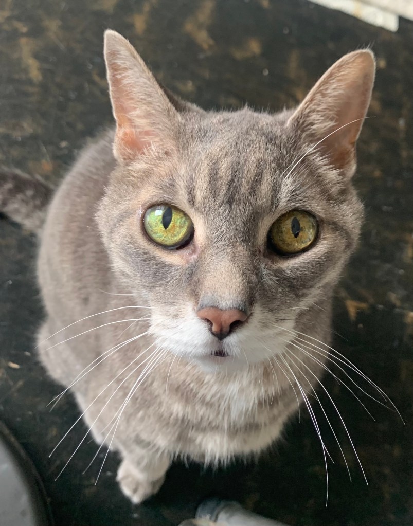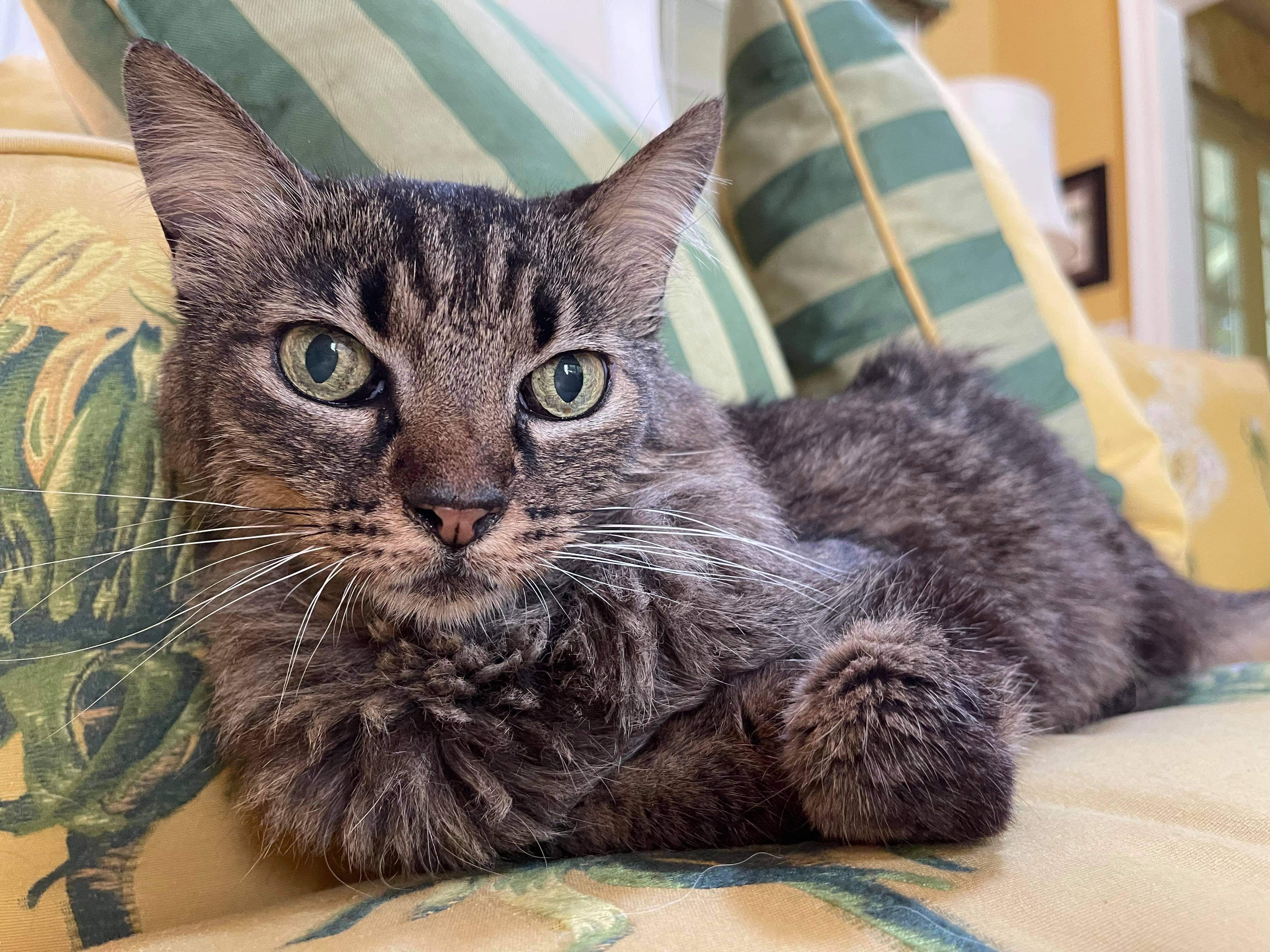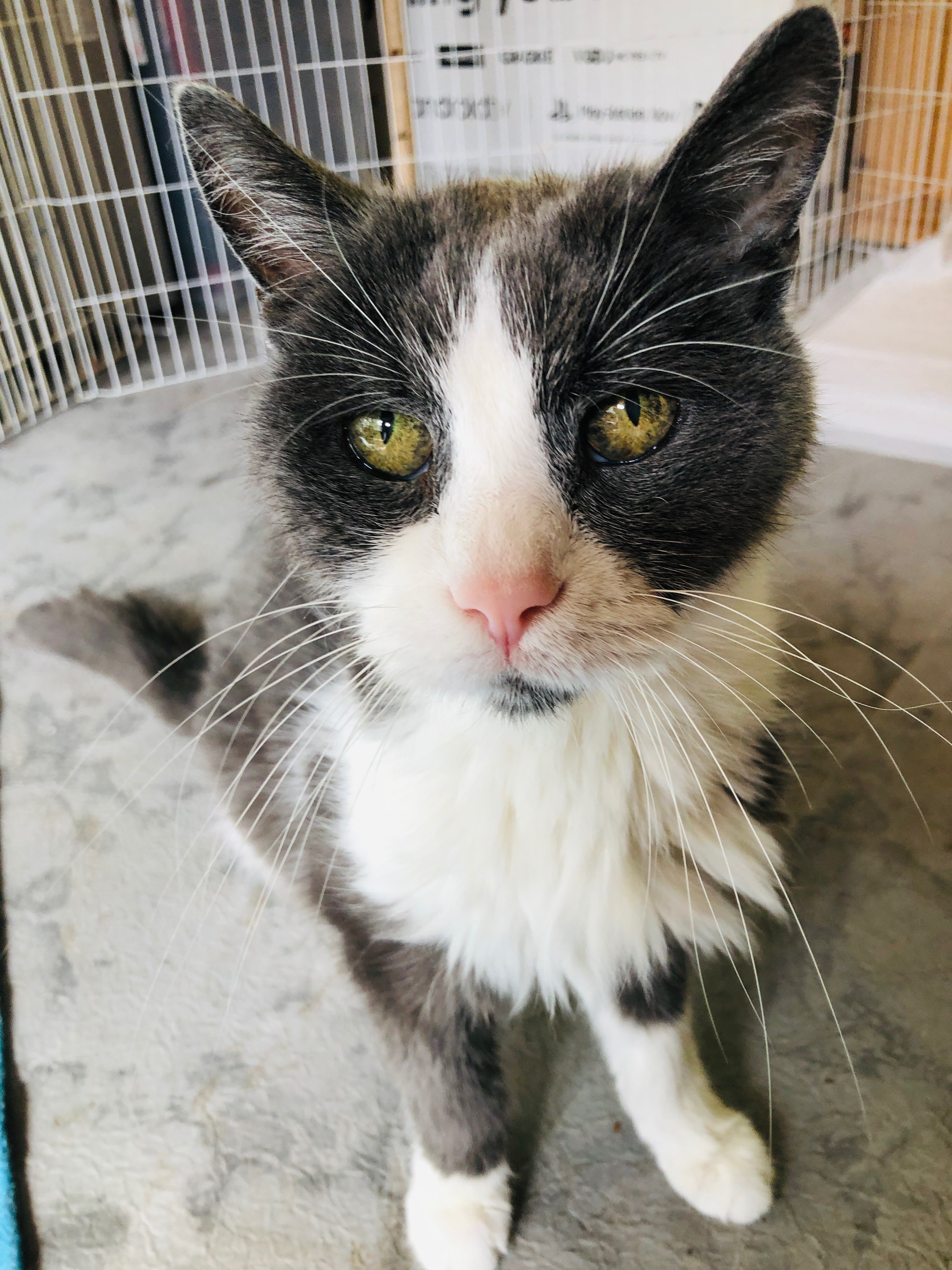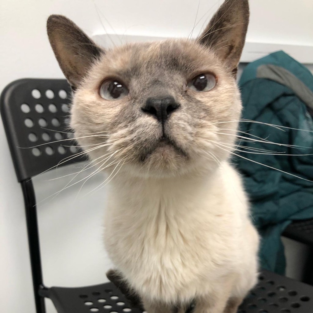 Mikey was 17 years old and came with Chichi when their human needed to go to hospice. He was an incredibly handsome, sweet boy. He loved to play and chase toys. His foster mom would throw toys one by one while he ran after each one and never brought them back! When Mikey came he only weighed 5 pounds due to untreated hyperthyroidism. We got this condition under control but unfortunately his kidney disease progressed rapidly and despite hourly care he declined and could not recover. In his last month with us he opened up so much and started coming up for snuggles and following us around. We’ll miss his loud meow and very quiet purr.
