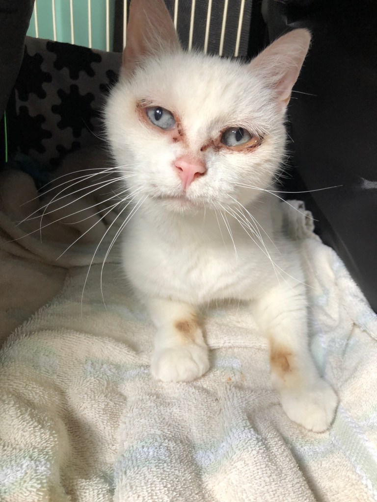 Venus was surrendered when her family moved into non-pet friendly housing. She was 21 years old, blind and had severe arthritis. She also had stage 3 kidney disease. It was determined from the beginning that Venus would stay as a permanent resident at the Sanctuary for the rest of her days. We cared for her 6 months while she enjoyed heated cat beds, face massages and one on one snuggles. She received pain medication, care for her kidney disease and she also went for acupuncture and laser therapy at Southern Ontario Animal Rehabilitation clinic. In the end it’s suspected she had a stroke as she lost the use of her back-legs. We helped her pass with her family in the room so she knew how much she was loved.