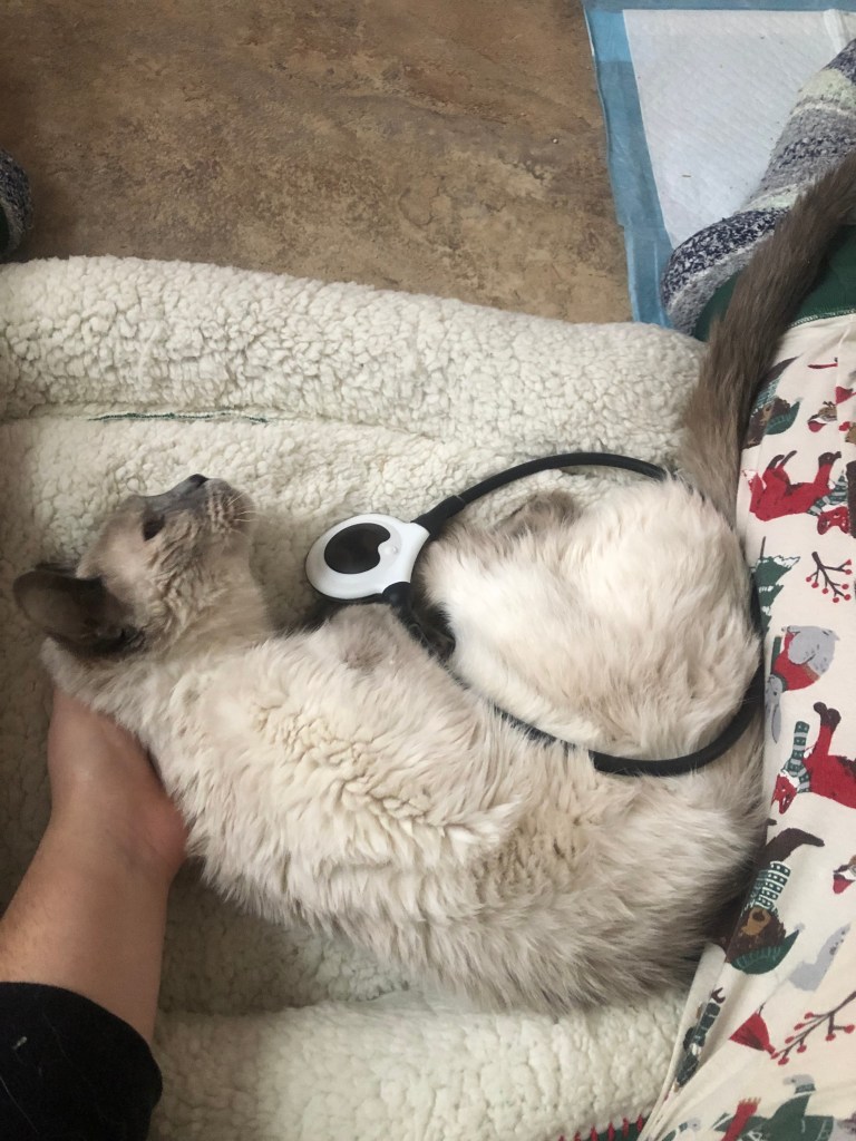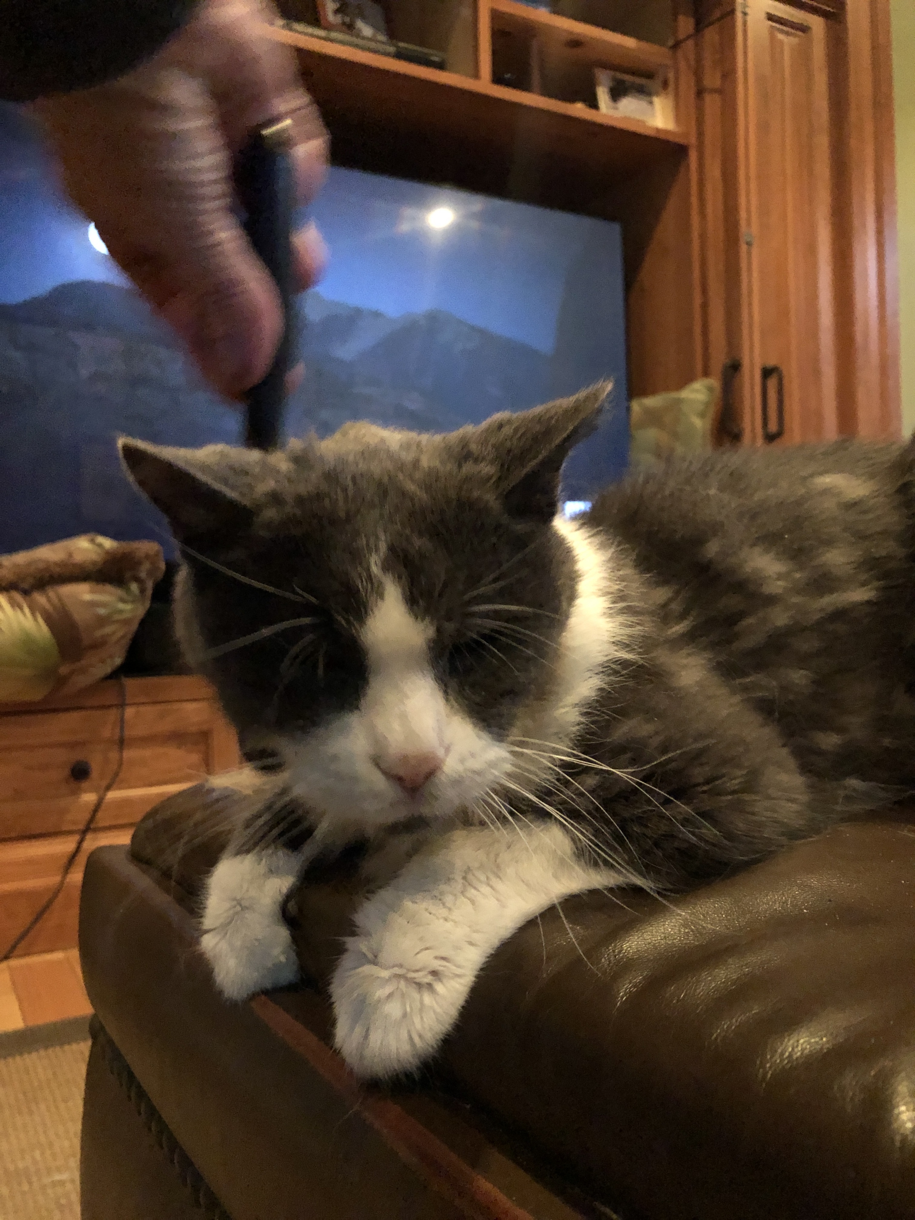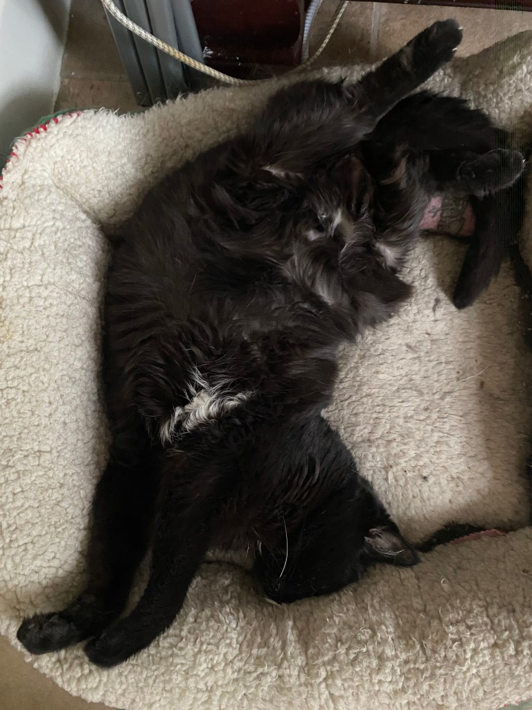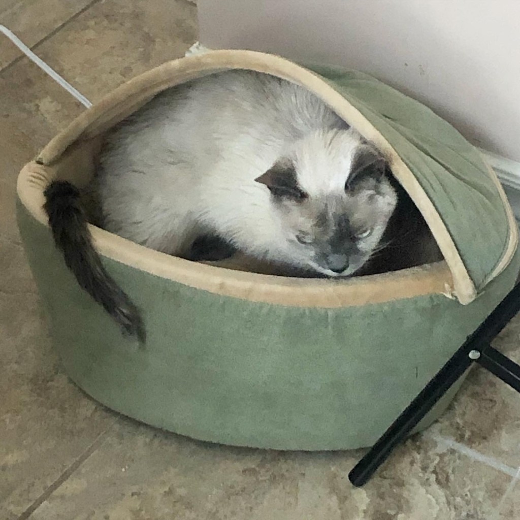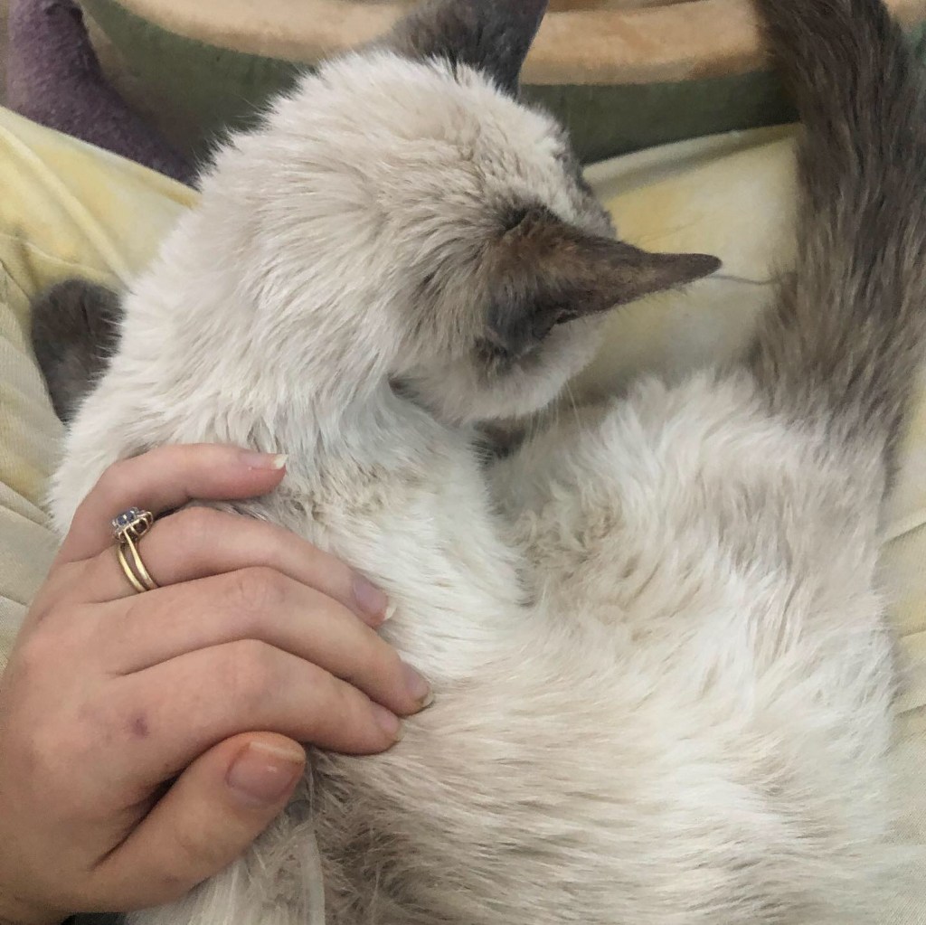 Coco came from a animal control after being surrendered when her person died. She was 18+ and loved attention. She had stage 2/3 kidney disease. She adored cheek rubs and lap snuggles. Treat tubes and heated cat beds. Her spirit shone so brightly. We spent our last day together doing all of those things.
