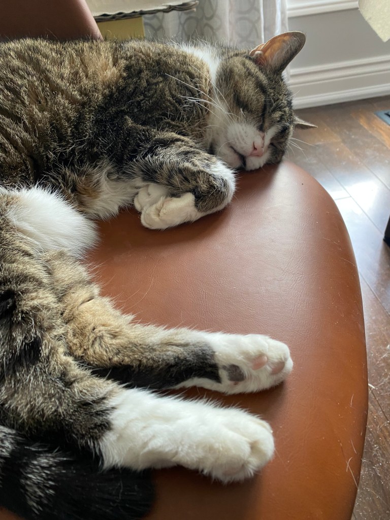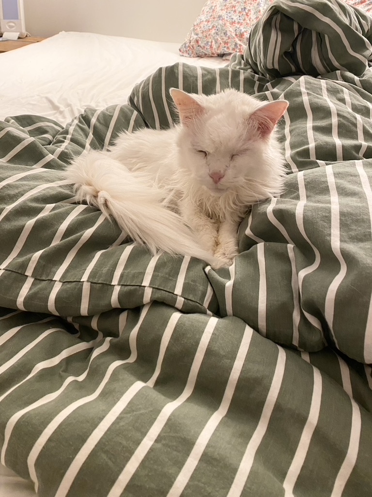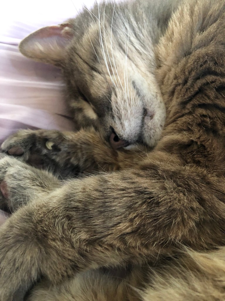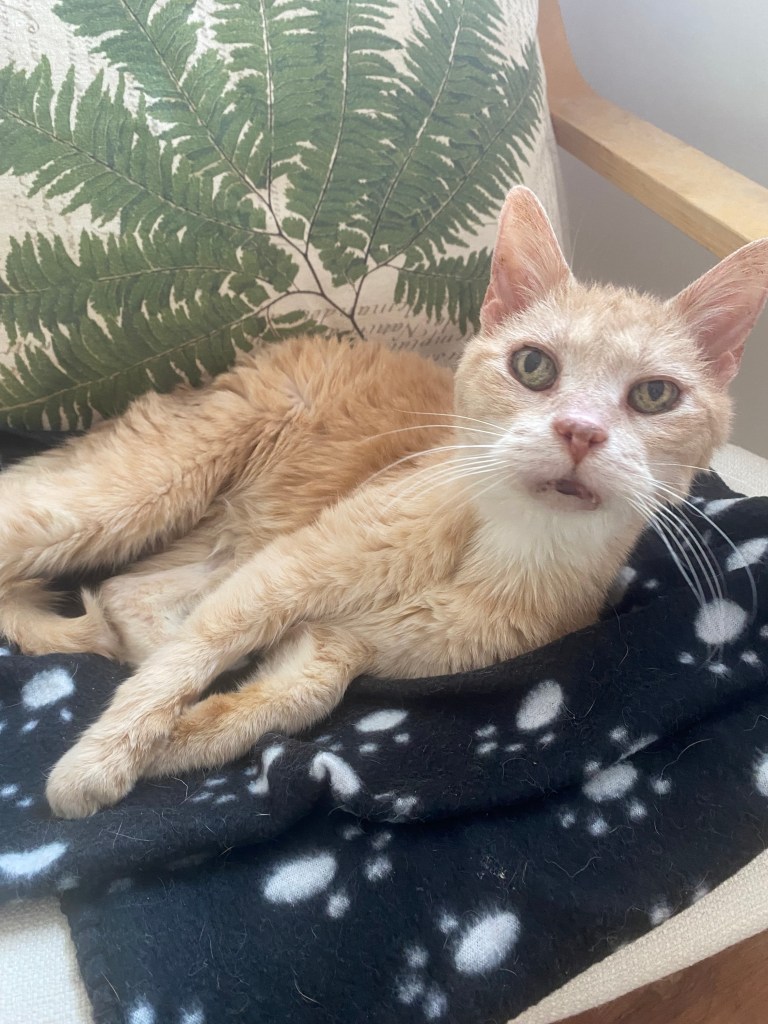 Dilly was only with us a few months after being seized from a neglectful situation and finding himself in a shelter. I am so so thankful that he had some months of love in a home. Dilly Bean was an incredibly sweet and special cat (I almost named him Sweetness). Always up for a chat and a cuddle and enjoyed playtime, food and cozy chairs. Dilly Bean’s kidney disease rapidly progressed.