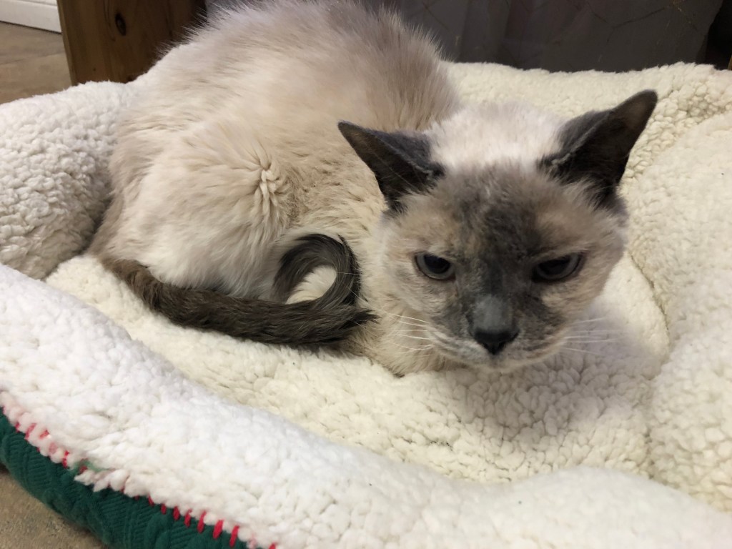 Apple Pie was about 18 years old and was found outside by caring people who brought him to a shelter. He had hyperthyroidism and then it was discovered he had multiple internal masses. This led to anemia which become unmanageable. Apple Pie adored people and would follow you around and sit in your lap as soon as you sat down. He enjoyed playing and had the most gorgeous eyes. He was often found curled up on a heated cat bed.