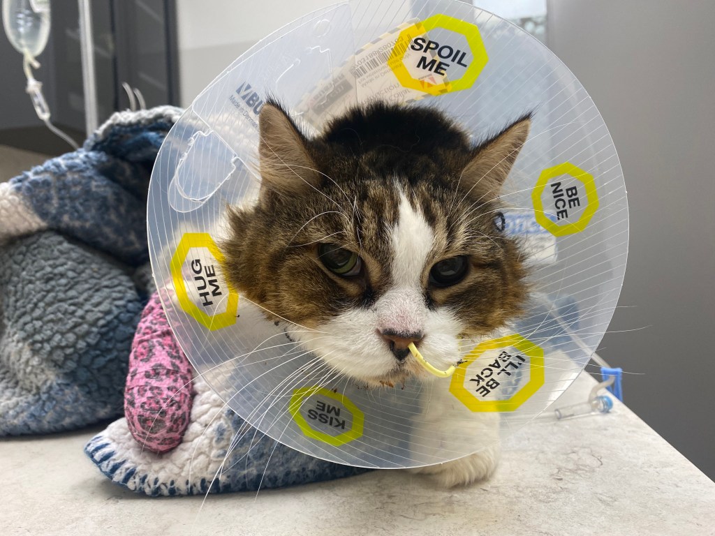 Kitty came into our care in February 2021 and stayed with a foster as a permanent resident. Kitty had a lot of medical scares and yet he’d recover to the surprise of everyone. He was eventually diagnosed with hyperthyroidism, chronic pancreatitis, arthritis, and kidney disease. Kitty loved treats, playtime and “helping” his foster mom work. He eventually developed non-regenerative anemia due to chronic kidney disease at the age of 21.