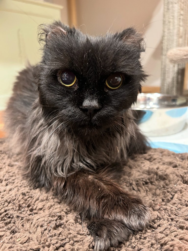 Moon came to us in August 2023 and lived at the Sanctuary for 6 months. She was extremely affectionate and wanted to be snuggled up with her foster mom. She loved played with bookmark tassels, chowing down on treat tubes and cuddling up on heated cat beds. Her kidney disease progressed rapidly, and despite hospitalization we weren’t able to get her over the flare. She passed away with assistance while being held by her foster mom.