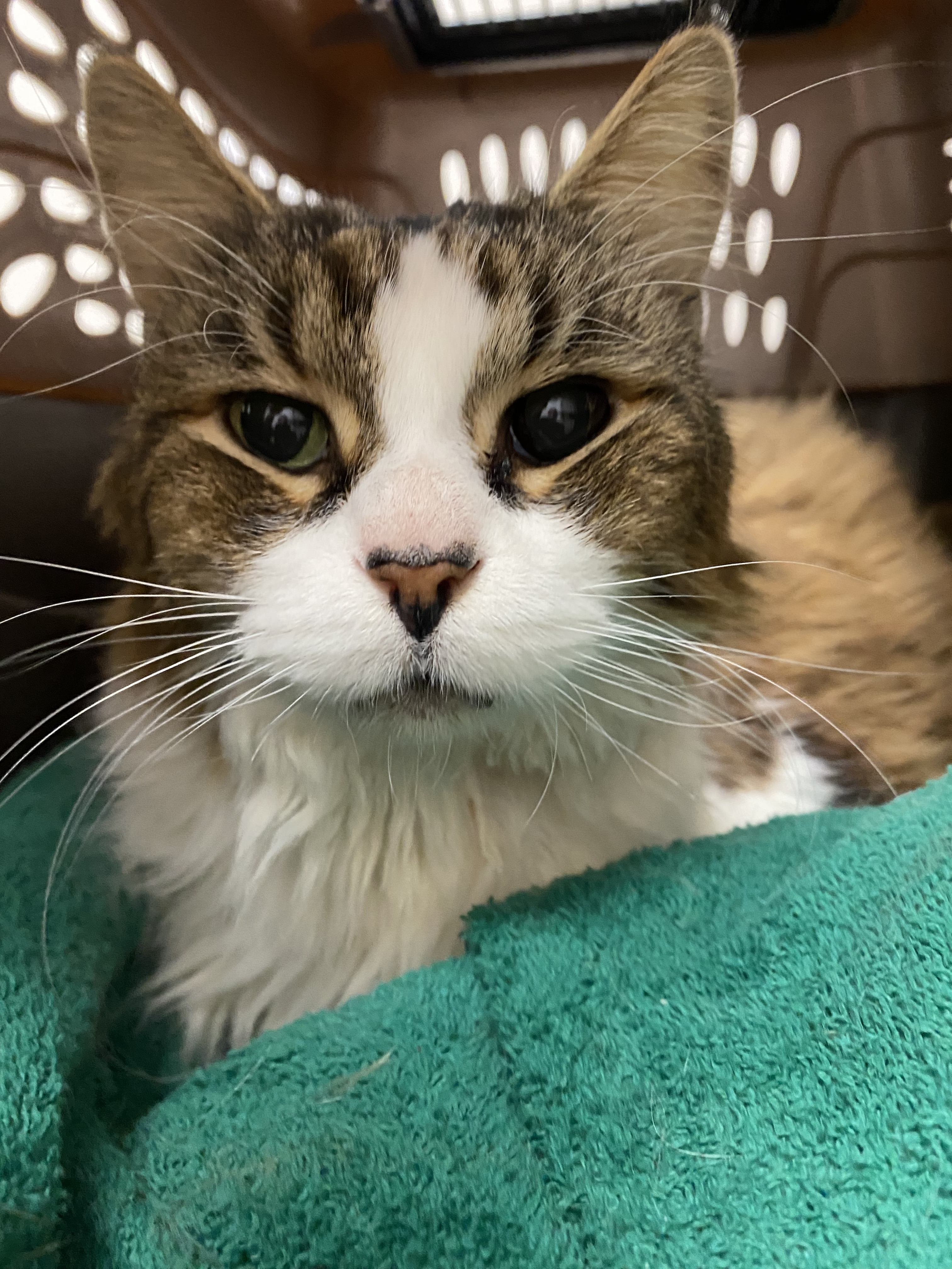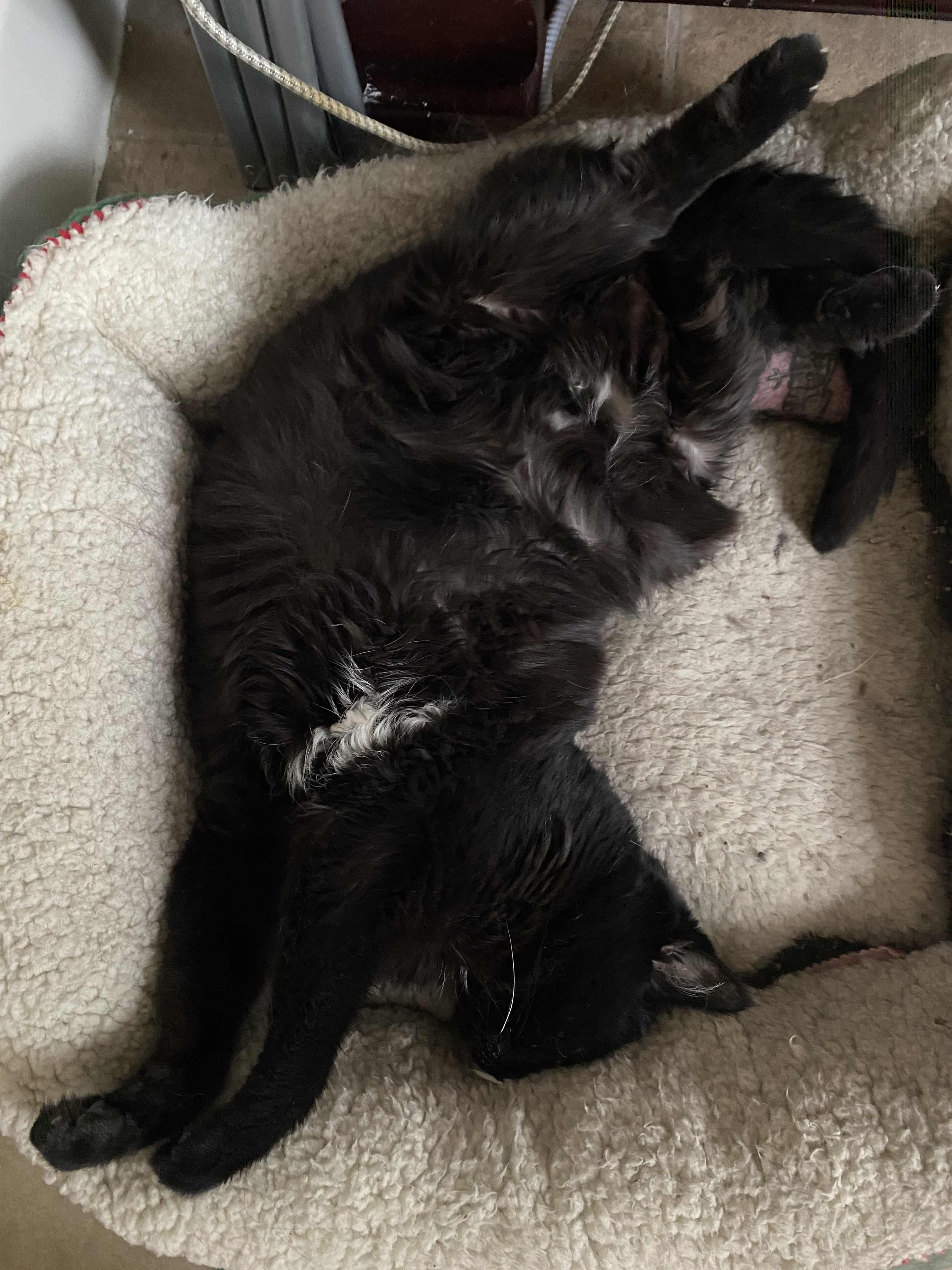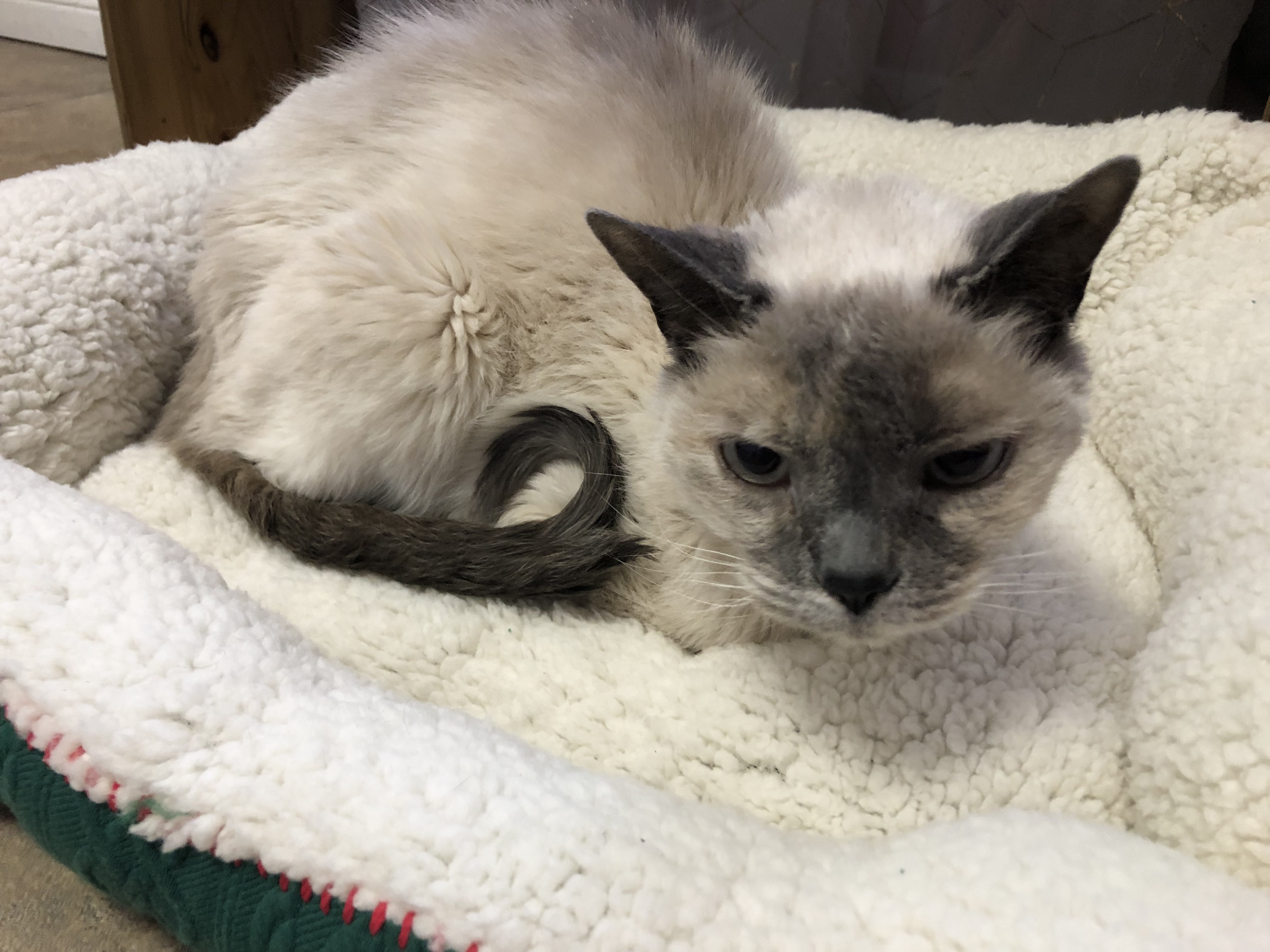 Coco came from a animal control after being surrendered when her person died. She was 18+ and loved attention. She had stage 2/3 kidney disease. She adored cheek rubs and lap snuggles. Treat tubes and heated cat beds. Her spirit shone so brightly. We spent our last day together doing all of those things.