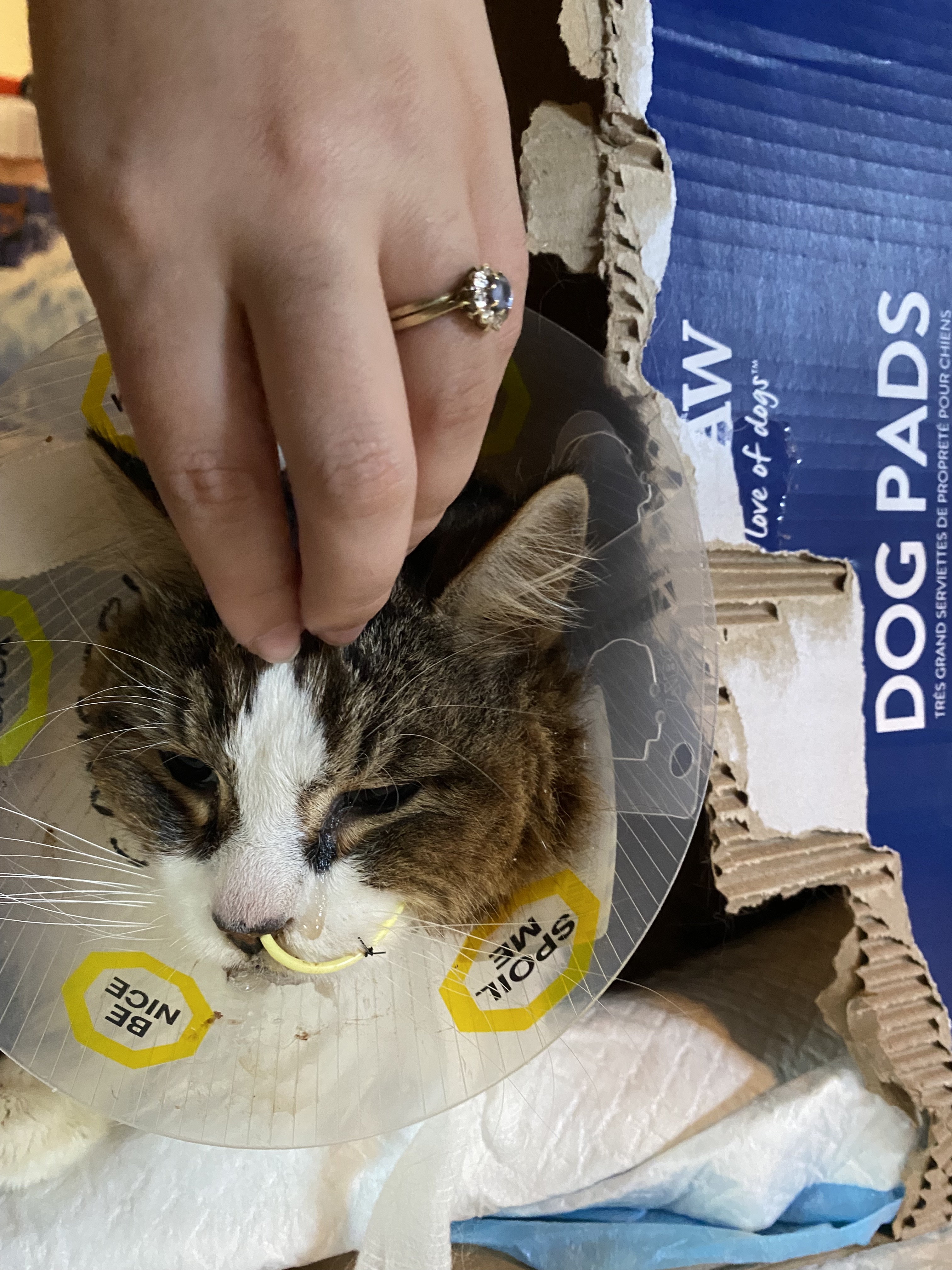 Dilly was only with us a few months after being seized from a neglectful situation and finding himself in a shelter. I am so so thankful that he had some months of love in a home. Dilly Bean was an incredibly sweet and special cat (I almost named him Sweetness). Always up for a chat and a cuddle and enjoyed playtime, food and cozy chairs. Dilly Bean’s kidney disease rapidly progressed.