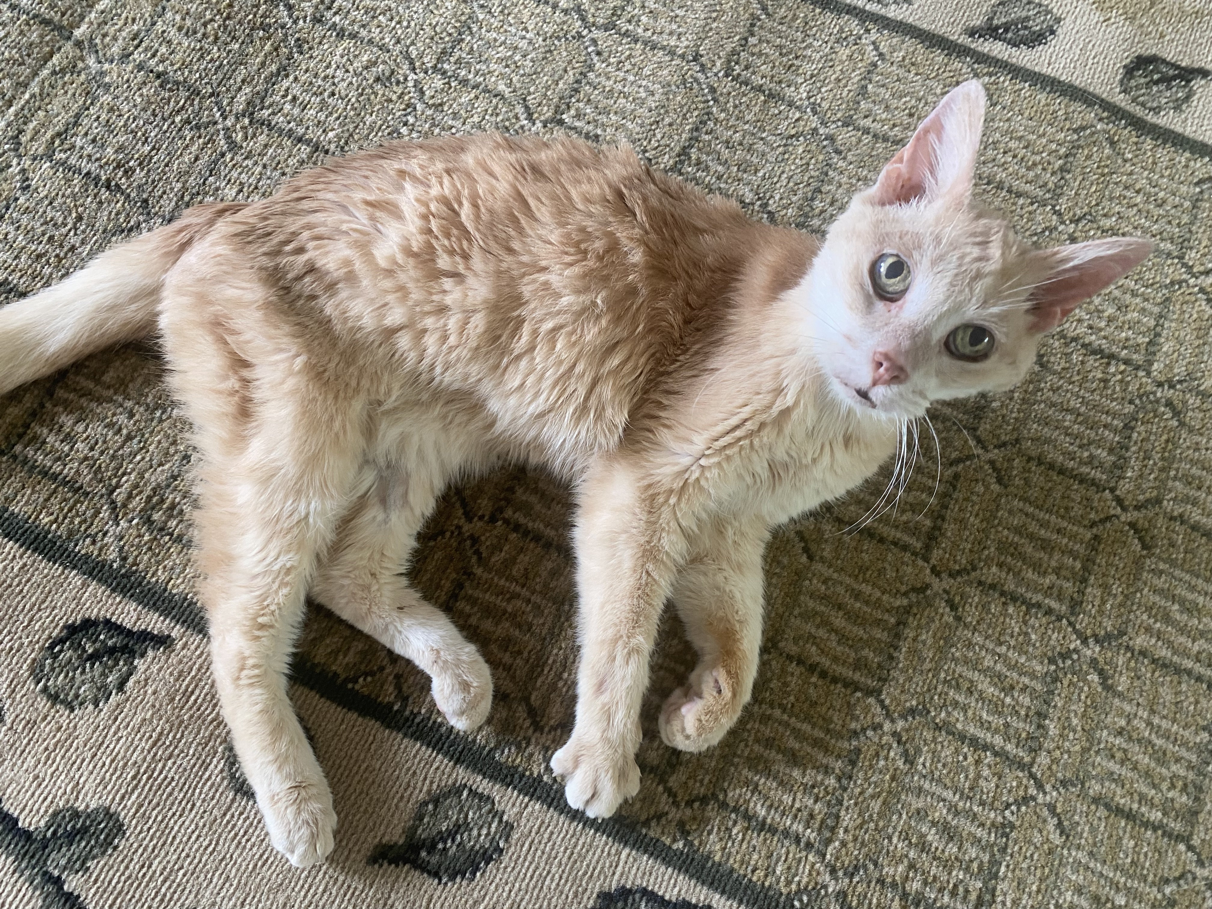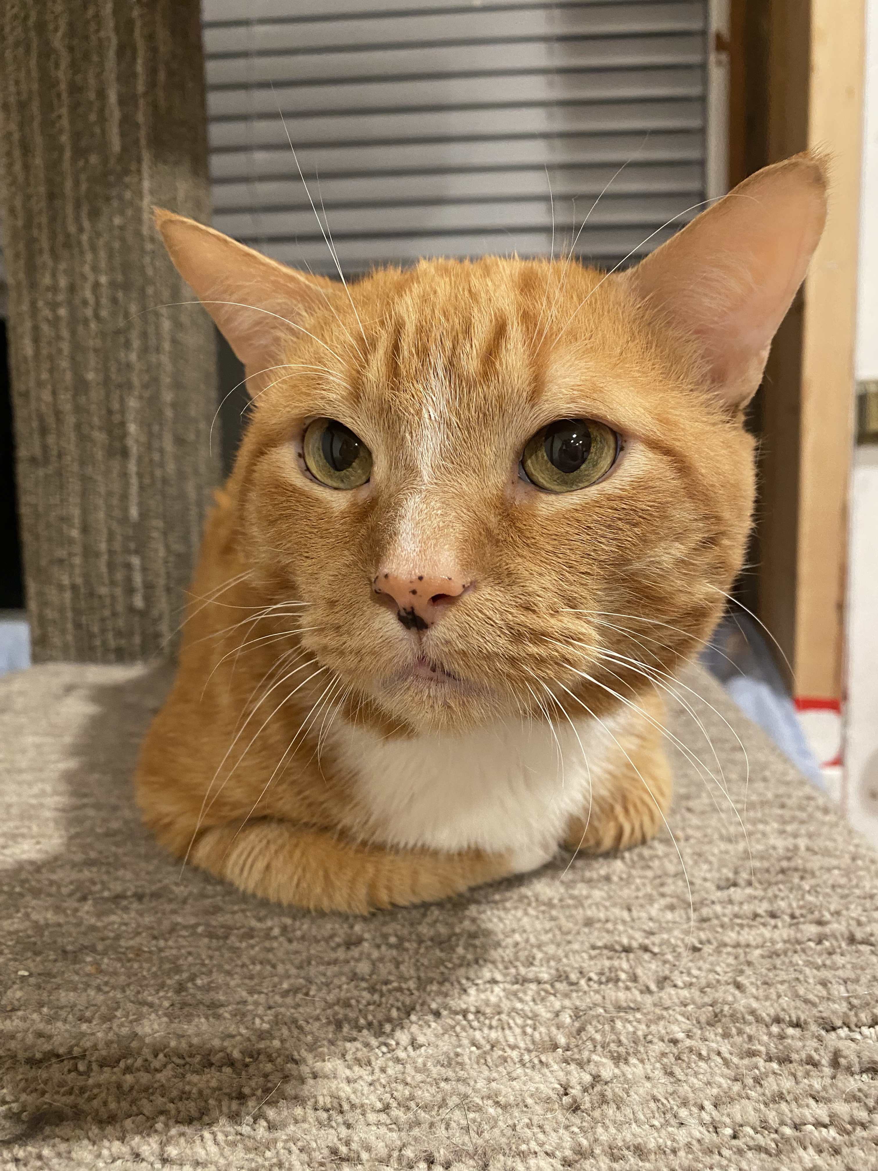 Gus was 14 years old and came to us when he had a euthanasia appointment scheduled. We managed to place him just in time! He was so sweet and and we were able to get him into diabetic remission. He developed some sort of spinal issue and we had a specialist appointment scheduled after standard tests did non reveal the cause. Unfortunately he crashed just days before his appointment. He was rushed to the vet but he was already too far gone. It’s suspected he had cancer. Gus will be remembered for the cutest purr we’ve ever heard that sounded like doves cooing. He loved to make biscuits, had the softest fur and he adored catnip.