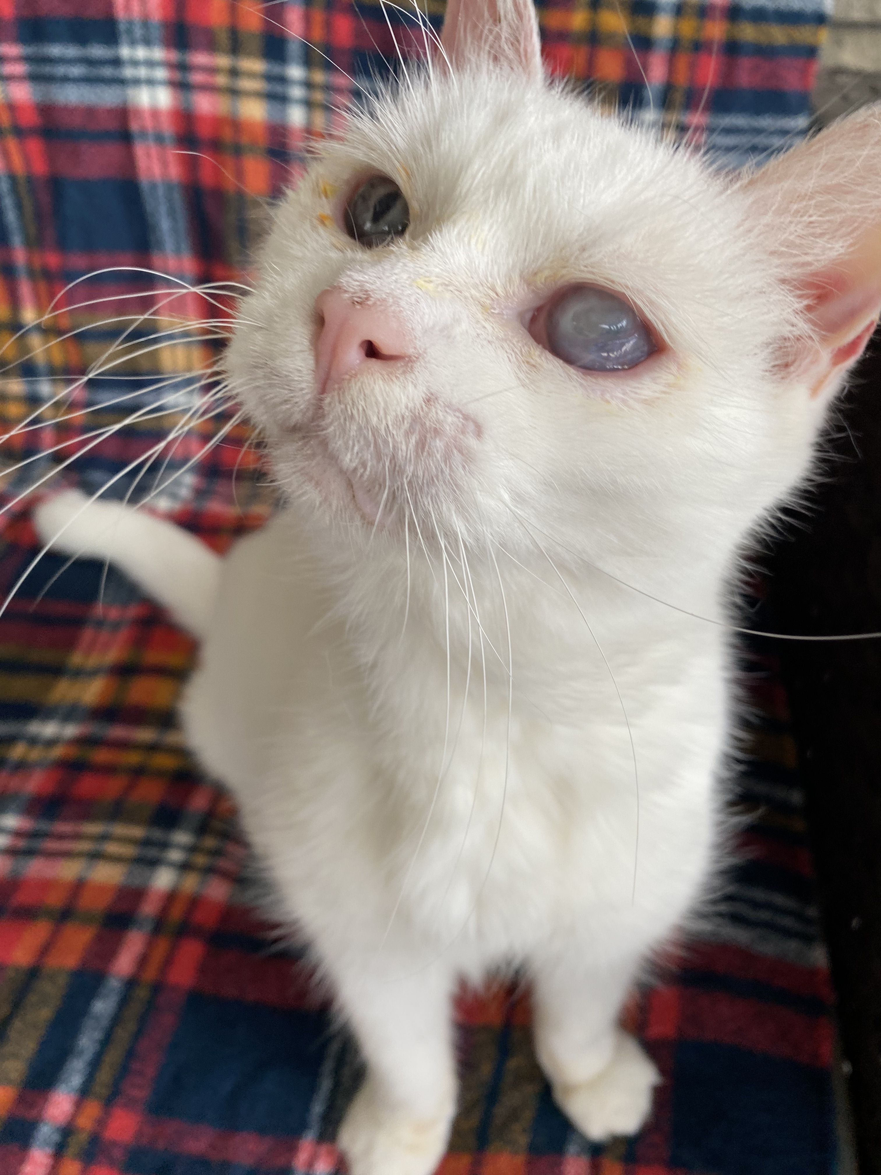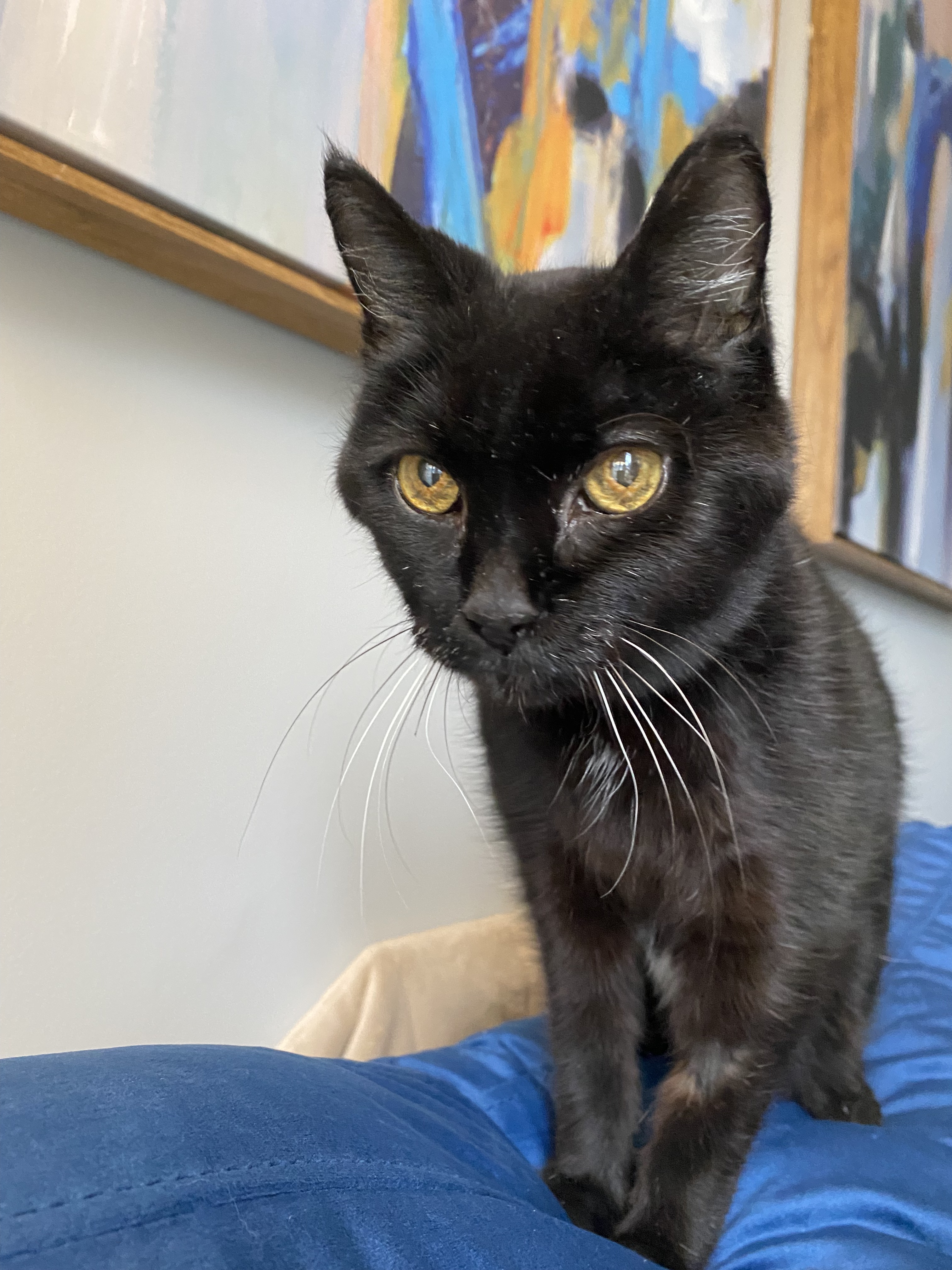 Chichi came to us in 2021 and was with us for 3 years. She had chronic eye issues which required three different eye surgeries. Chichi was independent and loved curling up and looking out the window. She adored cheek scritches and would fall over trying to get more. She developed heart failure and masses in multiple organs.
