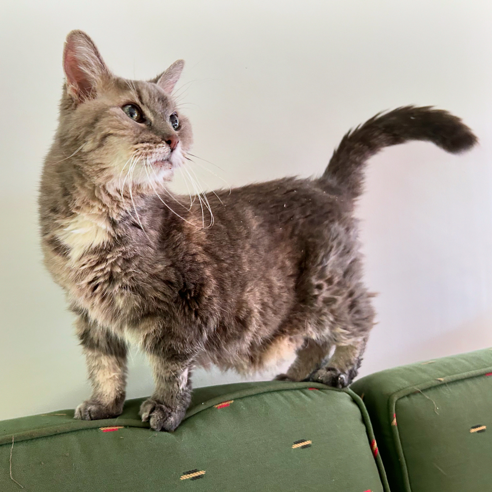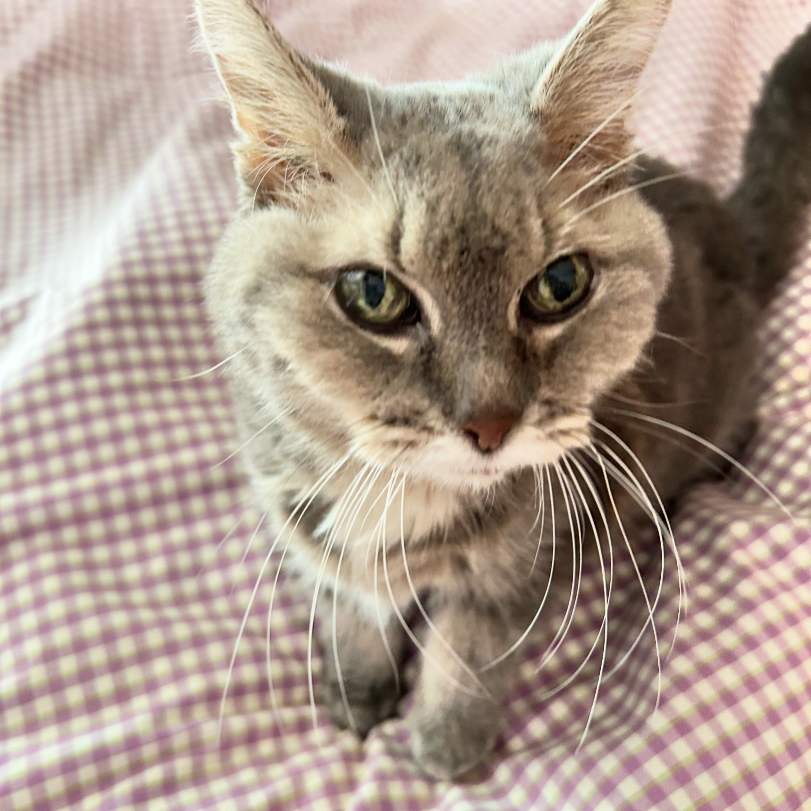 Moon came to us in August 2023 and lived at the Sanctuary for 6 months. She was extremely affectionate and wanted to be snuggled up with her foster mom. She loved played with bookmark tassels, chowing down on treat tubes and cuddling up on heated cat beds. Her kidney disease progressed rapidly, and despite hospitalization we weren’t able to get her over the flare. She passed away with assistance while being held by her foster mom.