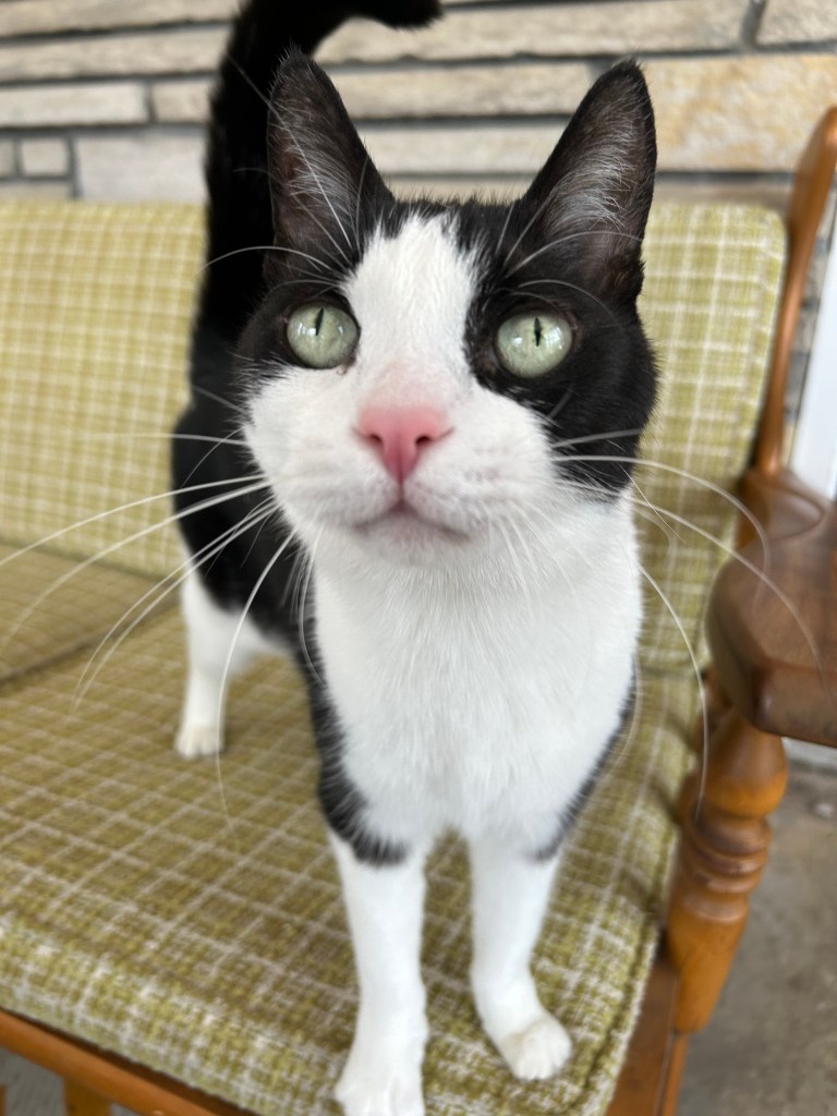 Seamus (pronounced “shay-mus”) is a lovely boy. He adores being picked up and will snuggle right into your neck and purr. Seamus was found outside and ended up at a local animal control. He was declawed at some point in his life.