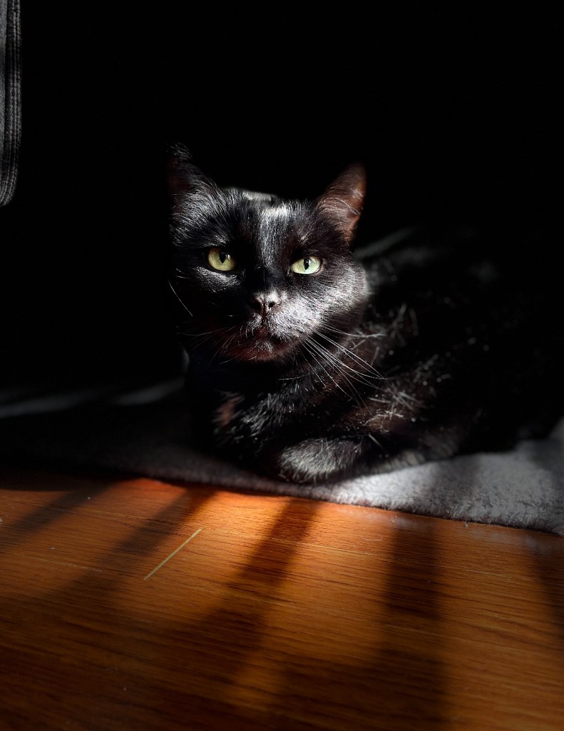 “Ivy is an active and sweet 15 year old black cat. She is spayed and up to date on her shots. She likes quiet adults, and prefers a quiet home without other animals. She is very affectionate, quirky and playful. She likes to sleep with her caregiver and have people around.”